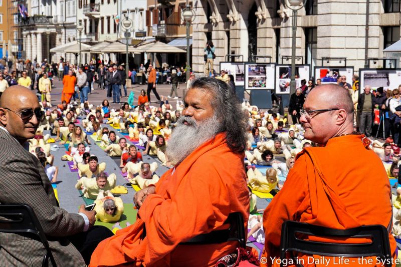 A celebration of World Health Day took place in Rijeka city center, in the main square Korzo, on Saturday 7 April 2018. The central part of the program was practicing of Yoga in Daily Life with several hundred people, organized by the management of Dharma Hostel, with special guest, H.H. Vishwaguru Paramhans Swami Maheshwarananda, author of the Yoga in Daily Life System.
